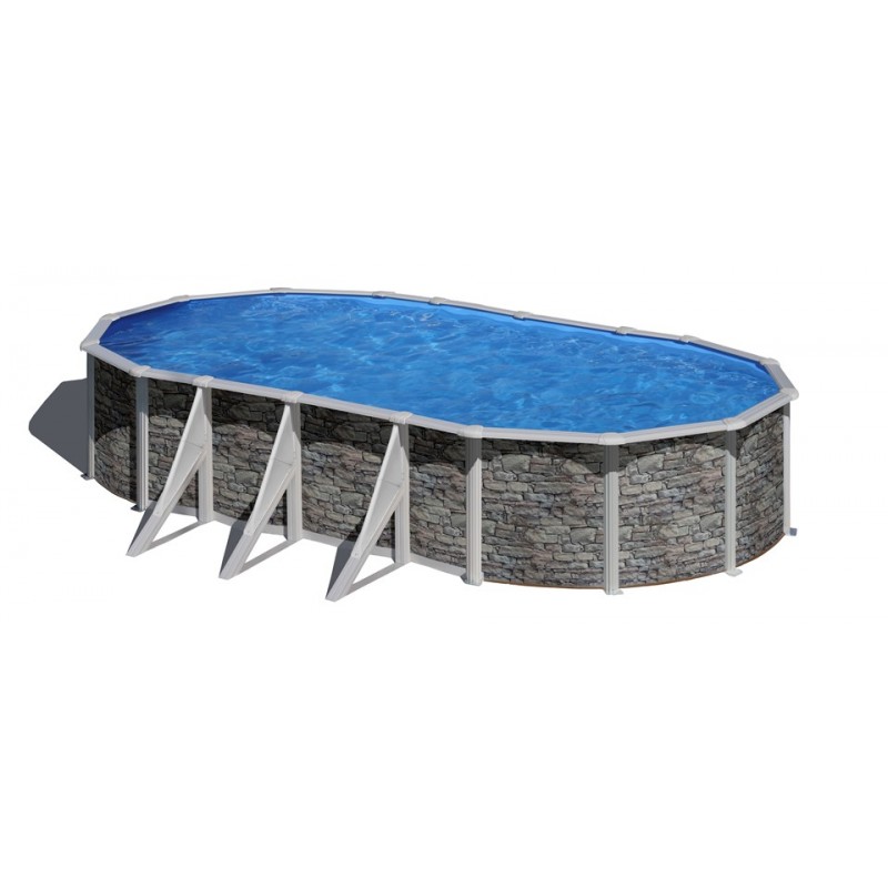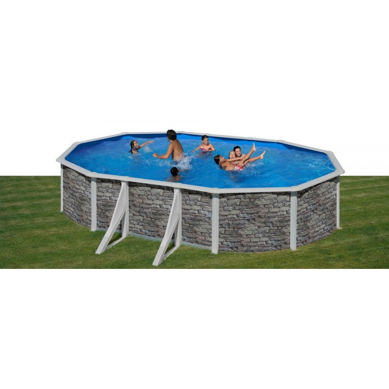 • Es una Piscina ovalada de pared de acero decoración imitación piedra.