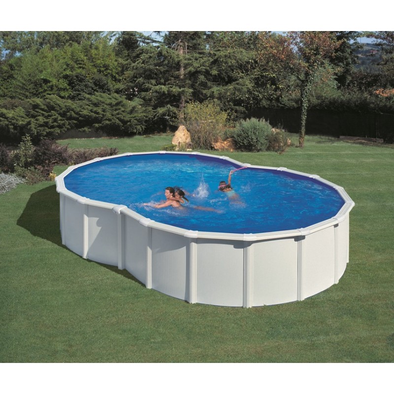 Las piscinas elevadas de acero blanco con forma de ocho seire Varadero se instala fácilmente sin necesidad de realizar trabajos de excavación y se acopla a cualquier lugar gracias a su gran durabilidad