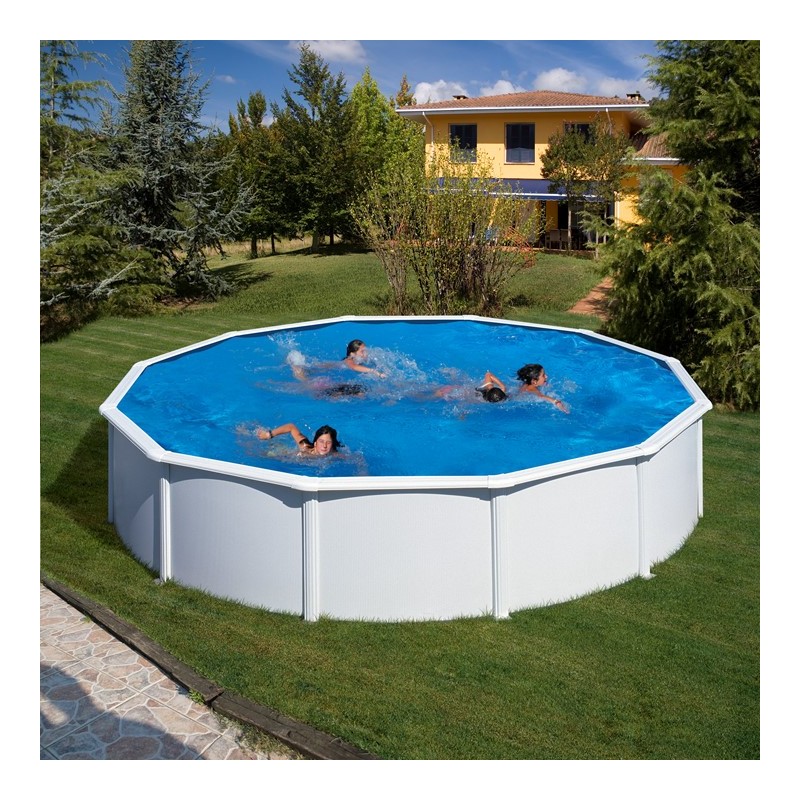 Piscinas de acero blanco elevdas moelo FIDJI redonda, se instala facilmente en cualquier lugar gracias a su versatilidad.