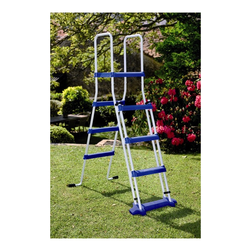 Piscinas de acero blanco elevdas moelo AZORES disponible en forma redonda y oval, se instala facilmente en cualquier lugar gracias a su versatilidad.