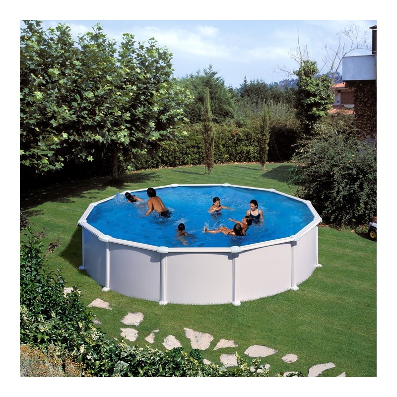 Las piscinas de acero en color blanco con forma redonda de la serie ATLANTIS de GRE se instala facilmente y se adapta a cualquier lugar gracias a su versatilidad.
