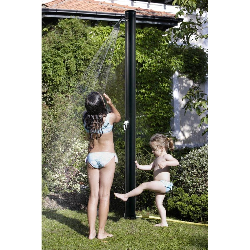 La instalación de una ducha solar en el jardín o en los alrededores de la piscina es muy sencilla y permite disfrutar de agua caliente gratuita y de forma rápida.Las duchas solares calientan el agua gracias a la energía solar y no consumen electricidad. Se instalan en el jardín, en la terraza o cerca de la piscina y sólo necesita estar conectada a una manguera con acceso al agua.
