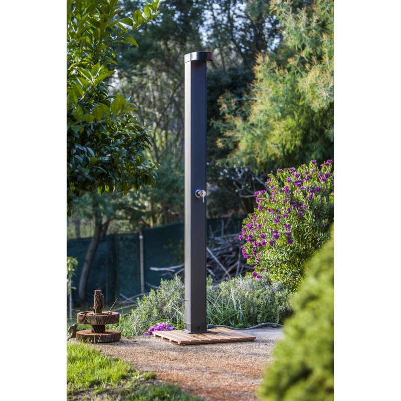 La instalación de una ducha solar en el jardín o en los alrededores de la piscina es muy sencilla y permite disfrutar de agua caliente gratuita y de forma rápida.Las duchas solares calientan el agua gracias a la energía solar y no consumen electricidad. Se instalan en el jardín, en la terraza o cerca de la piscina y sólo necesita estar conectada a una manguera con acceso al agua.