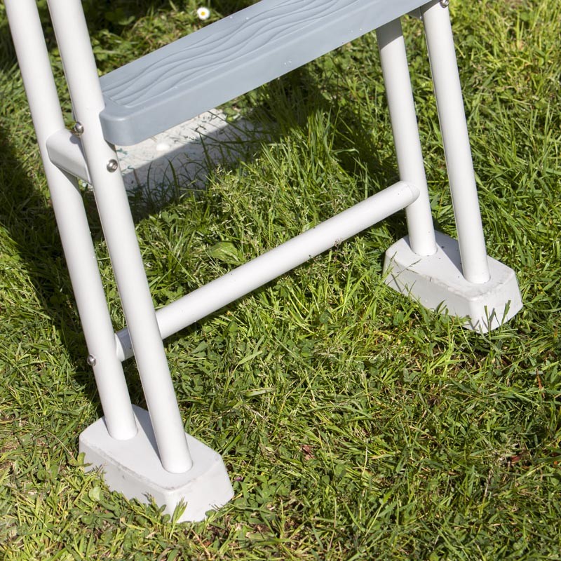 Como fabricante especialista en piscinas desmontables, GRE propone una gama amplia de escaleras para piscinas elevadas. Esta gama compuesta de 4 escaleras se adapta a muchos tipos de piscina como las piscinas de acero, de madera, de composite, hinchables y tubulares y a varias alturas de piscinas: de 0,90 m a 1,35 m de altura.
