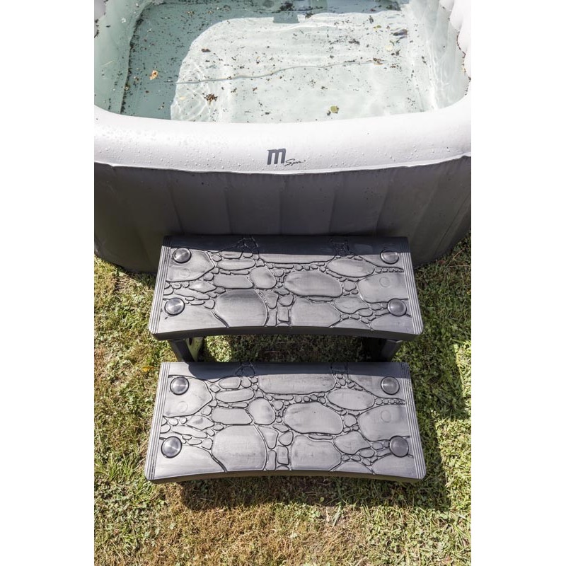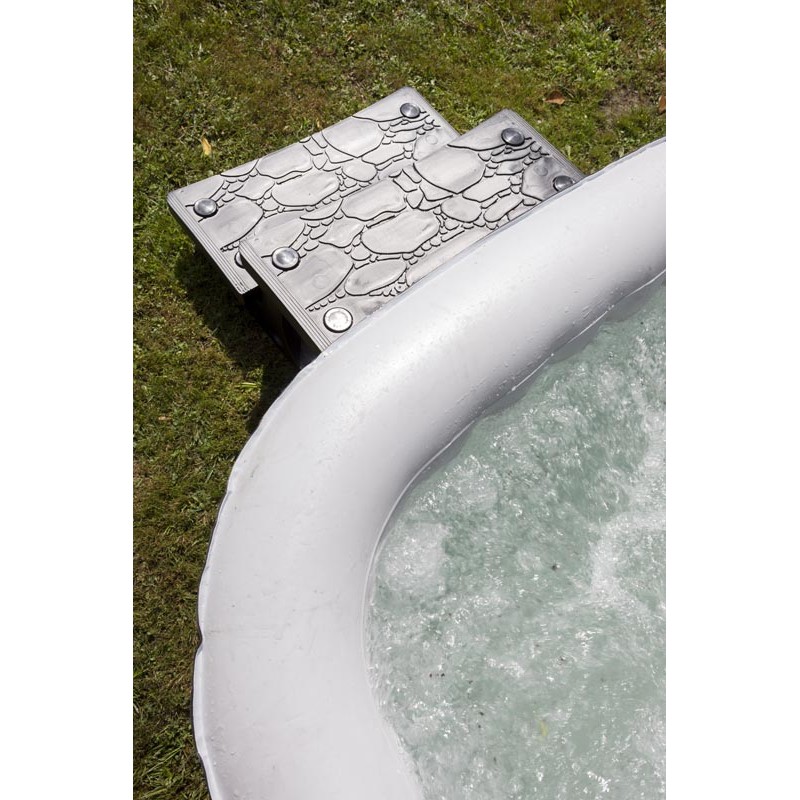 Novedad en el mercado, GRE ha lanzado una pequeña escalera para spas hinchables o rígidos. Con un color de gris oscuro, esta escalera se adapta a todos los colores de los spas y sigue las tendencias actuales de decoración exterior. Esta escalera facilitará el acceso a los spas para las personas mayores o con dificultades de desplazamiento.
