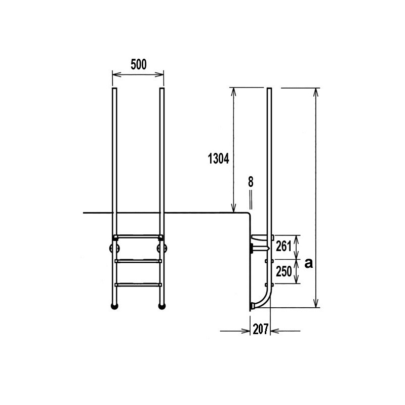 – Escaleras para piscinas con peldaño de seguridad.