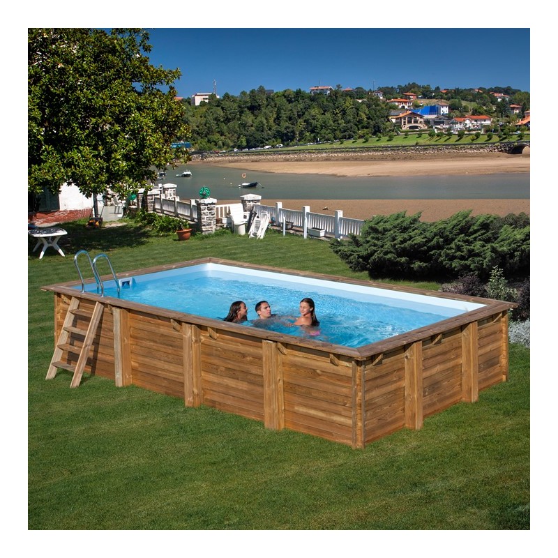Piscina rectangular de madera de pino silvestre francés, fabricadas en Francia y con tratamiento autoclave IV que garantiza la resistencia de la madera contra el ataque de los insectos y prudimiento.