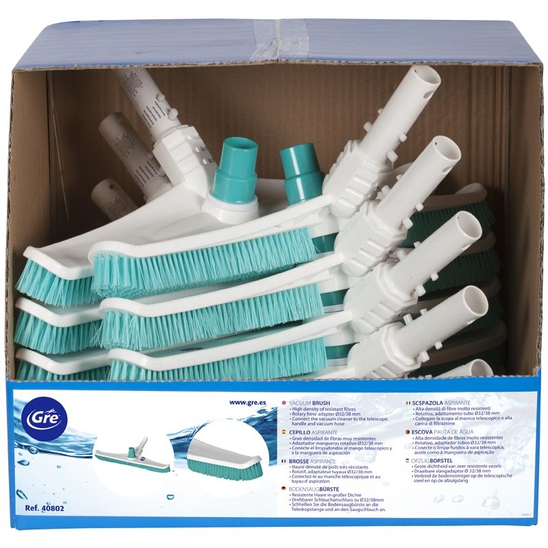 Los cepillos de GRE permiten limpiar en profundidad las piscinas desmontables y enterradas, tanto el fondo como las paredes. Los cepillos de la gama de GRE están diseñados con un sistema de fijación (sistema clip o palomillas) para conectar con un mango telescópico, lo que permite limpiar la superficie de toda una piscina sin tener que desplazarse mucho. Estos cepillos están disponibles en varios tamaños, colores o materiales para cubrir todas las necesidades de limpieza de la piscina.
